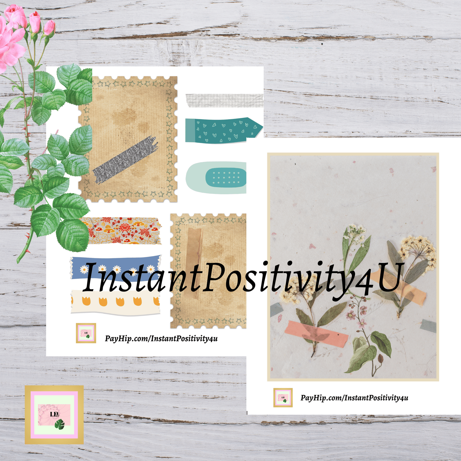 Vintage Junk Journal Kit| Ephemera, Tags, Washi| Handmade Floral Decorative Scrapbooking Papers| PDF Digital Download| 11 Sheets, 300dpi, 8"X10"