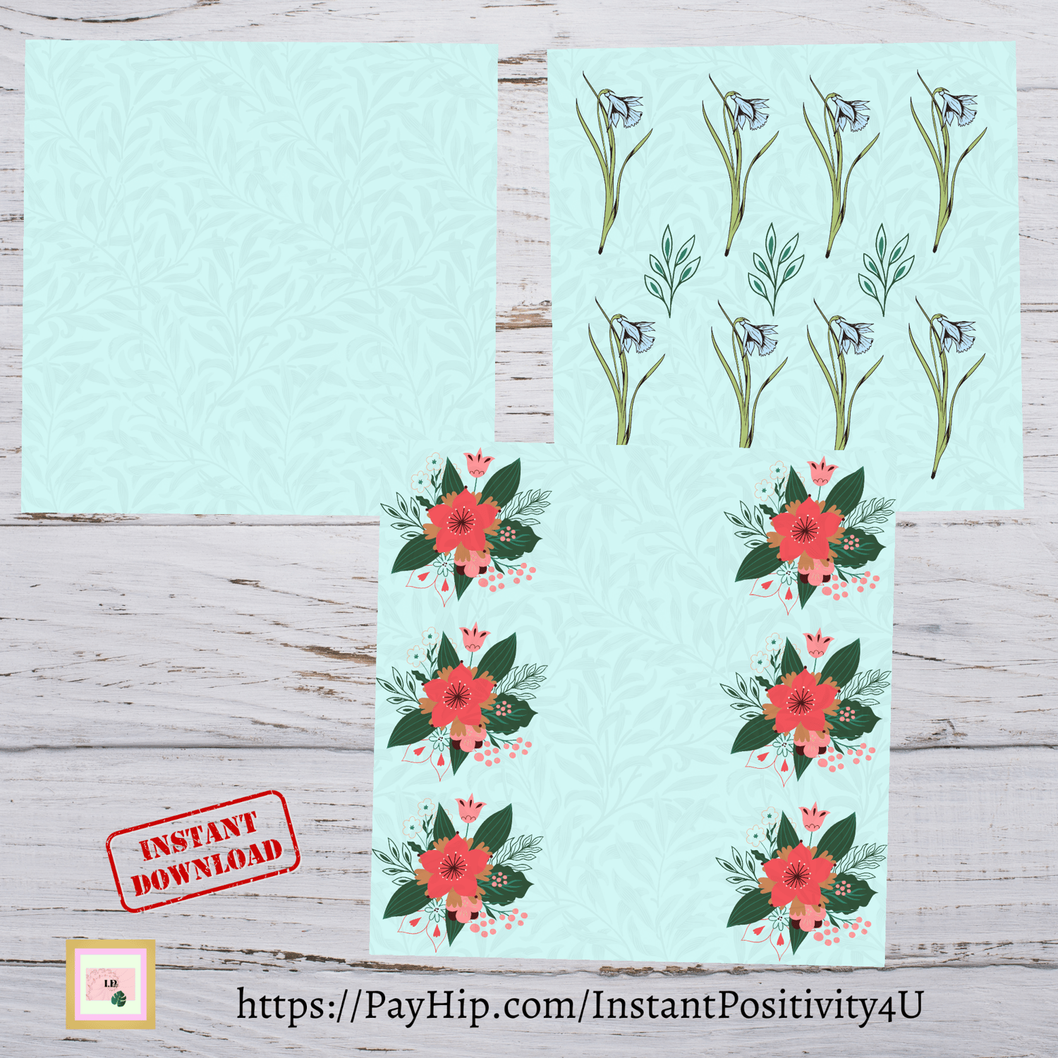 • Vintage Floral Pattern A1-3 Pdf 300dpi 12x12 Sheet